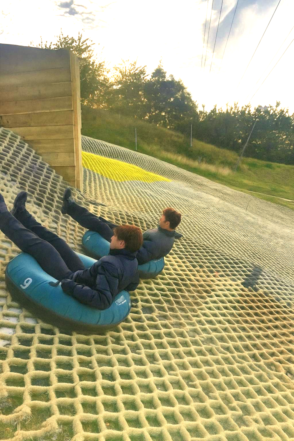 Gloves & trousers, with trainers as footwear, must be worn at all times; long sleeves are highly recommended due to the coarse material of the slope.